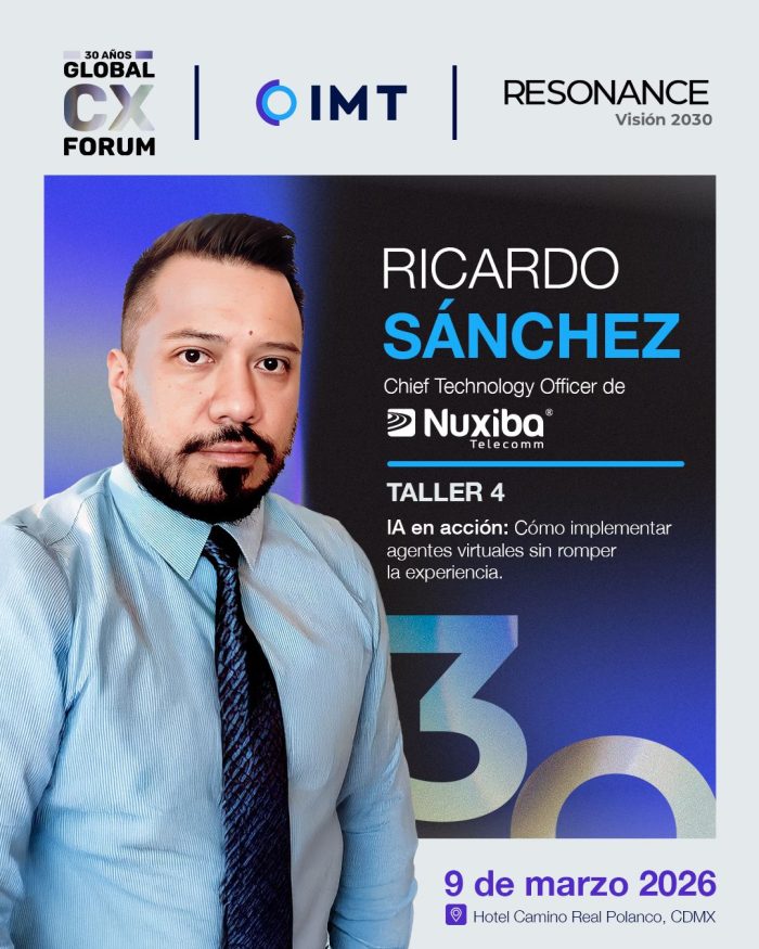 El taller será impartido por Ricardo Sánchez, Chief Technology Officer de Nuxiba, quien mostrará cómo recorrer todo el ciclo de vida de un Agente Virtual: desde la definición de objetivos estratégicos y los casos de uso más relevantes, hasta el diseño conversacional, las integraciones técnicas, las pruebas, el despliegue y la mejora continua, ofreciendo a los participantes un marco práctico para implementar agentes inteligentes de manera efectiva y generar valor real para la experiencia del cliente.